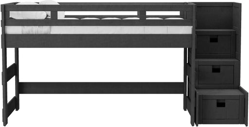 Elements International Cali Kids Twin Junior Loft Bed with Staircase in Sleek Gray