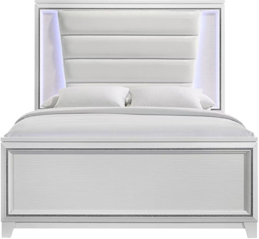 The epitome of fashion-forward design, this king upholstered panel bed is a beautiful blend of comfort and luxury. Shiny chrome-tone accents, a pea...