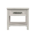 Define your living space with the transitional style of the Avalanche End Table. Constructed of quality solid and engineered wood, the tabletop's broad surface is complemented by an equally spacious open shelf, effortlessly extending your storage and display options. Designed for practical use, a functional drawer adorned with a broad, textured handle features protective felt lining and skillful French and English dovetailing, while a conveniently integrated USB port lends itself to practical utility. For a sleek and stylish addition to your home, the Avalanche End Table in Antique White delivers in quality and design. Features: • Made of Solid & Engineered Wood • Okoume Veneer Resists Warping • USB Port Simplifies Charging Devices • Open Shelf Extends Staging Area • Drawer with Skillful Dovetailing • Aesthetic Carvings on Drawer Front • Drawer with Protective Felt Lining • 24"W x 24"D x 24"H • Due to Lighting, Product Color May Slightly Vary from Images Dimensions: Depth: 24.0" x Width: 24.0" x Height: 24.0" Weight: 48.0 lbs.