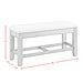 The Colorado dining collection, brings boldness to a casual dining scheme. With a trestle base design and a deep finish, this everyday counter height table serves as a perfect gathering space. Enjoy an attractive chevron design on its table top while accommodating deep chairs and extra storage. The inventive table design creates options for positioning to suite your needs. The slat back design of the chair and the black hardware finishes, reflect a design-forward blend of modern and farmhouse concept. Features: • Crafted from Solid Wood • Acacia Veneer Surfaces • Distressed with saw makings and skiving detail • Foam Cushioning • upholstered in cream fabic • Tapered Legs • Modern Farmhouse Design • Easily Assembled Dimensions: Depth: 17.0" x Width: 48.0" x Height: 25.0" Weight: 40.0 lbs.