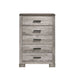 The Millers Cove Twin 3PC Panel Bedroom Set is going to look great in your bedroom! This set comes with a bed, chest and nightstand. This bed features a panel inset in not only the headboard, but also in the footboard; instantly adding extra flair to this already stylish piece. The case pieces offer plenty of storage space for your belongings, and the top drawers are lined with velvet; allowing you to easily store away your more delicate belongings. The collection has a 3D paper finish, giving a cool update to traditional bedroom staples. The tops of the pieces are finished in a dark gray, and contrast beautifully with the light gray color. Add this collection to your home today, for a look you'll love coming home to day after day! Features: • Includes: Bed, Chest and Nightstand • Panel Bed • 3D Distressed Paper Finish • Panel Insets in Headboard and Footboard • Dark Gray Tops on Headboard and Footboard • Spacious Storage in Case Pieces • Velvet Lined Top Drawers • Dark, Metal Drawer Handles • Block Feet • Dust Proofing on Bottom Layer • Transitional Style • Mattress and Box Spring Required Dimensions: Depth: nan" x Width: nan" x Height: nan" Weight: 264.0 lbs.