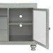 The Avril 60"� TV Stand is a glamourous addition to your entertainment space. Accented with mirror plates, two cabinet doors perfectly complement drawers adorned with posh crystal knobs and constructed with skillful dovetailing and ball bearing glides. Cable holes are conveniently integrated to simplify installing electronics and reduce clutter caused by cords, while stylized bun feet offer a stable foundation. A smooth and sheeny silver finish is accentuated by an aesthetic glitter trim adorning the top perimeter. Designed for those seeking to add a touch of luxury to their entertainment area, the Avril 60"� TV Stand is the clear choice. Features: • Mirror Accents Convey Glam Style • Made of Durable Engineered Wood • Cable Holes Help Organize Wires • Drawers with Skillful Dovetailing • Smooth Ball Bearing Drawer Glides • Aesthetic Crystal Knobs & Glitter Trim • Bun Feet Offer Reliable Support • Anti-Tip Kit Enhances Safety • 60"W x 18"D x 34"H • Due to Lighting, Product Color Mary Slightly Vary from Images Dimensions: Depth: 18.0" x Width: 60.0" x Height: 34.0" Weight: 154.0 lbs.