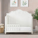 Adorn your child's nursery with the traditional style of the Alana Crib with Guardrails. Framing of solid poplar wood provides durability, while the crisp, white finish makes this piece easy to pair with various color palettes and existing nursery pieces. Three adjustable base heights enhance longevity, allowing extended use as your child grows. Decorative molding and bun feet add delicate stylistic touches that anchor this piece in timeless elegance. The Alana Crib with Guardrails is a practical, quality, and stylish addition to your child's nursery. Features: • Made with Solid Poplar Wood • Decorative Molding Adds Traditional Style • Bun Feet for Stylistic Flair • Guardrails Enhance Safety • Conversion Kit Transforms Crib to Youth-Sized Bed • 58"W x 31"D x 52"H • Due to Lighting, Product Color May Slightly Vary from Images Dimensions: Depth: 32.0" x Width: 58.0" x Height: 52.0" Weight: 103.0 lbs.